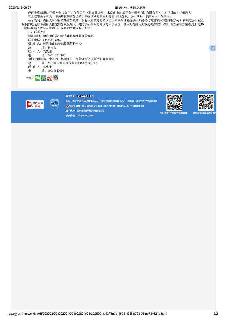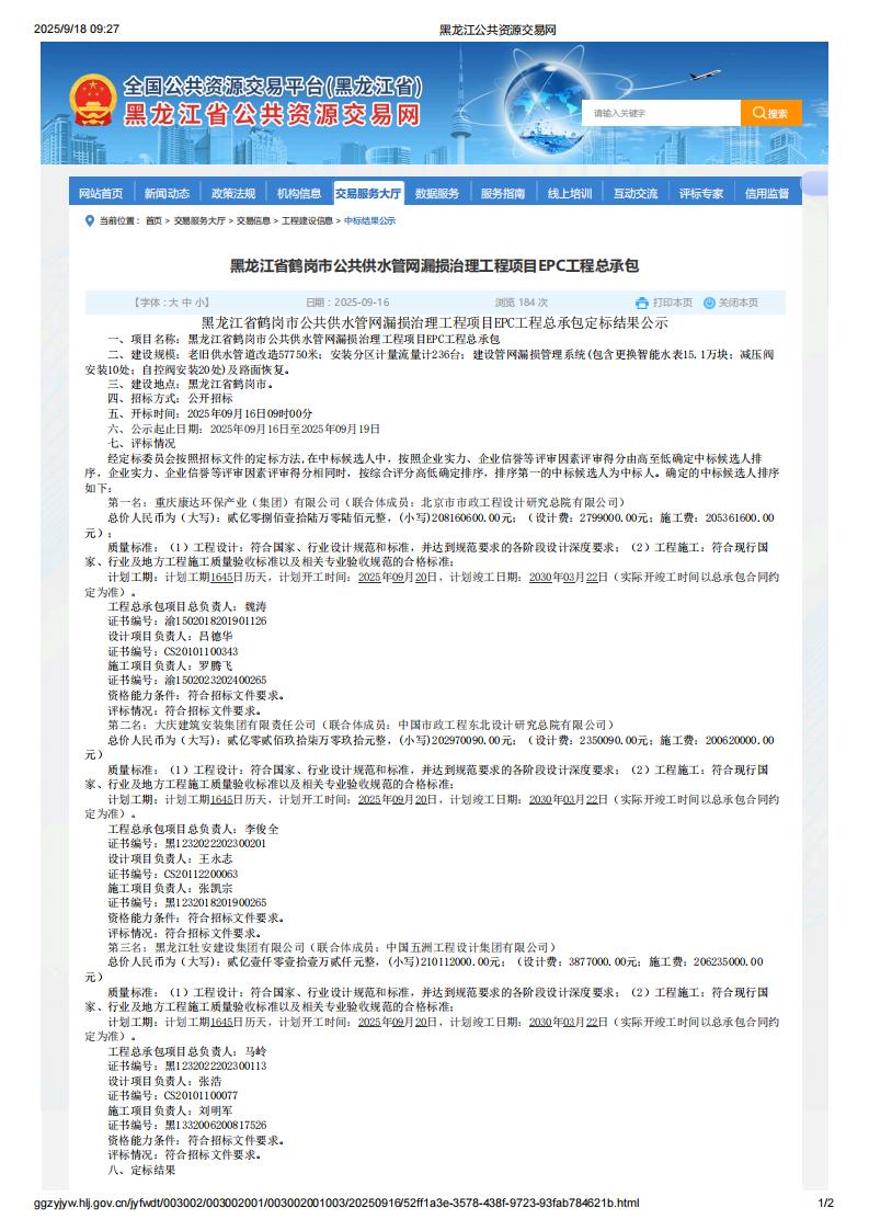 黑龍江省鶴崗市公共供水管網(wǎng)漏損治理工程項目EPC工程總承包中標結(jié)果公示