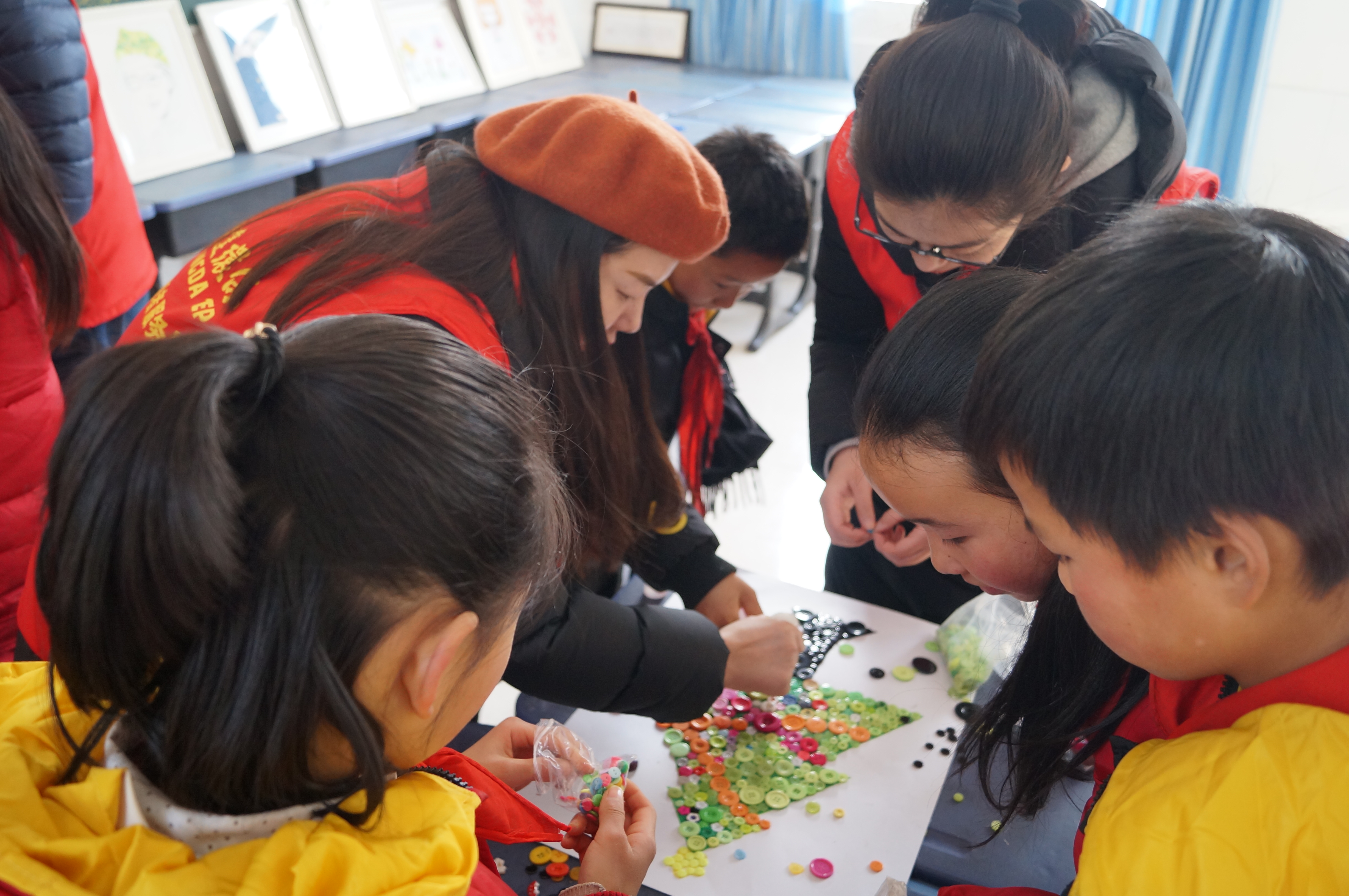 ? ? ?? 活動(dòng)期間,志愿者們與孩子們展開(kāi)了親密的互動(dòng)交流。有的跟著孩子們學(xué)習(xí)紐扣手工制作“絕技”,有的與孩子們載歌載舞、玩游戲,有的與孩子們暢談未來(lái)、暢聊夢(mèng)想,為孩子們解惑答疑……志愿者們看著孩子們一張張洋溢著明亮、幸福的笑臉,天氣雖寒心卻很暖……孩子們或依偎、或團(tuán)坐在志愿者們的周?chē)衽笥岩粯佑H密無(wú)間,時(shí)而與志愿者們竊竊私語(yǔ),時(shí)而開(kāi)懷大笑,整個(gè)校園猶如陽(yáng)春三月般溫暖。最后,孩子們不僅向集團(tuán)領(lǐng)導(dǎo)和志愿者們敬獻(xiàn)紅領(lǐng)巾,還向集團(tuán)公司贈(zèng)送了象征著友誼的紐扣手工作品。