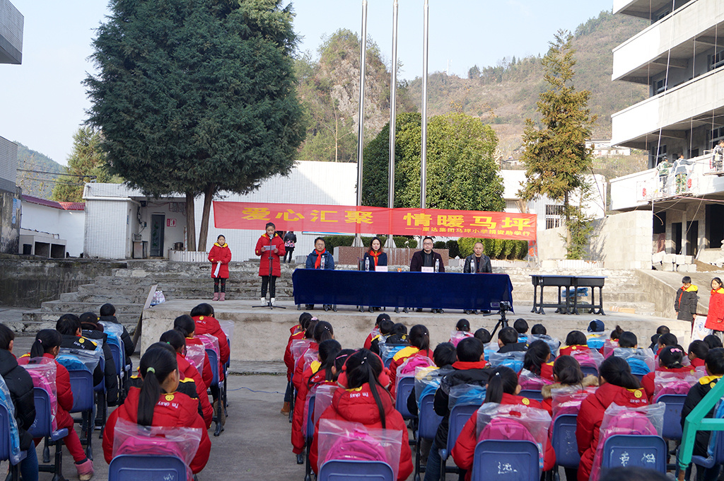 ? ? ? 12月16日,康達(dá)集團(tuán)12名青年志愿者代表在集團(tuán)總裁助理、總裁辦公室主任段海燕和副主任朱濤的帶領(lǐng)下來(lái)到巫溪縣田壩鎮(zhèn)馬坪小學(xué),參加由康達(dá)集團(tuán)捐贈(zèng)的校園文化墻竣工儀式和開(kāi)展“愛(ài)心匯聚、情暖馬坪”志愿者活動(dòng)。