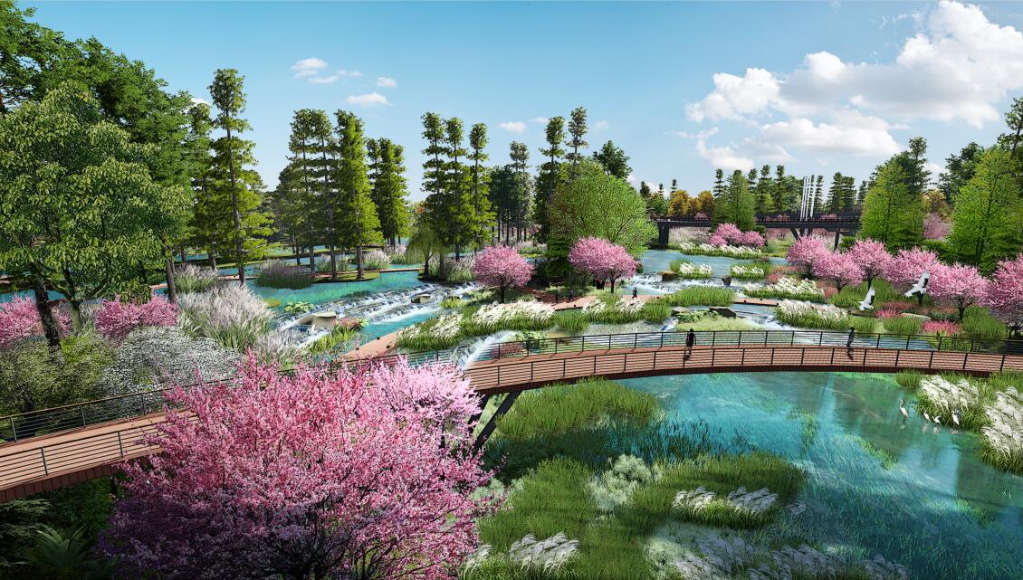 三江濕地生態修復工程位于撫州老城區西北,撫河、宜黃河、鳳崗河之水交匯于此,南靠撫州主城區撫河大道、北面撫河。三江濕地生態修復工程項目總面積約為1388畝,項目總投資2.3億元。項目包含景觀工程、水利工程、市政交通及橋梁工程、水生態工程、預警系統等幾大部分。景觀工程以“生態門戶、濕地天堂、候鳥棲地,休閑佳境,凈化平臺,觀光勝地”為主題定位,主要分區包括濕地、樹林、蘆葦灘、草甸、沙灘、蓮池、草坪、程家村改造、排洪河改造等。